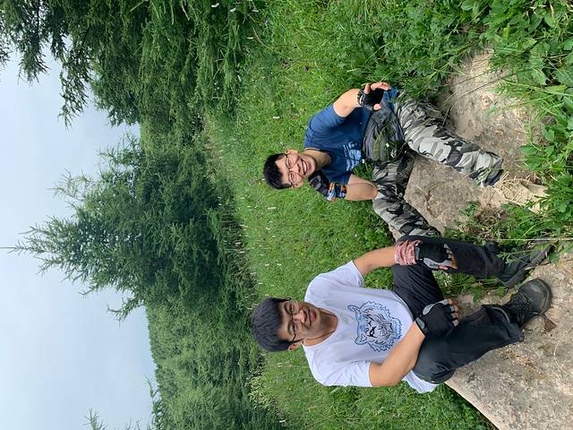 约莫等了半个小时不见后队,便下撤一小段,刚好看到后队,然后才发现,没错就是下面这个笑起来像个两百多斤的孩子的胖子叫小士兵得家伙,竟然背了20瓶水上山