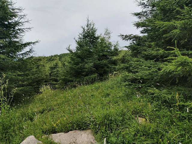 约莫快一年没人走过,杂草盖过了路面,经过曾经几十人溪边戏水热闹小溪差点没认出,从初始的负重前行,慢慢开始适应,和同行的前队小伙伴开始了有说有笑的登山之旅,一路上随处可见不知名的花儿,