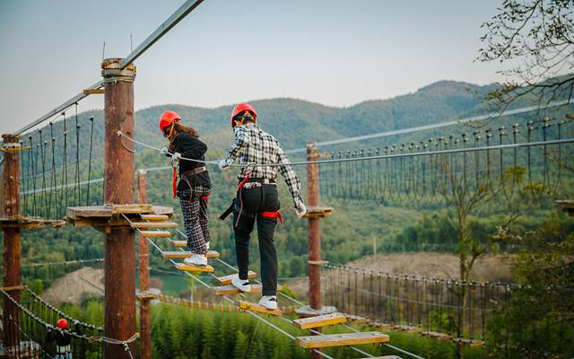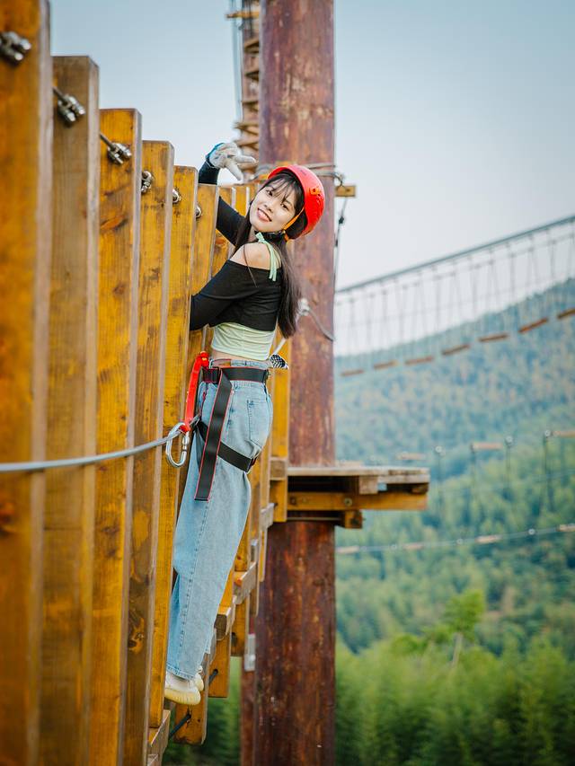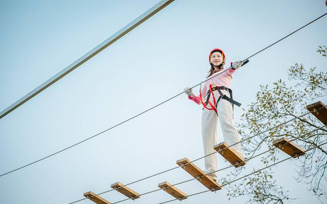 这个被称为勇敢者游戏的地方,搭建了各种难易不同,风格迥异,超强刺激的关卡障碍,整个项目被串连在了一起,足足有40个关卡之多,戴上头盔和安全套索,就可以选择体验悬空桥梁、网道、步道、木桶、秋千等各种丰富多彩的项目啦!