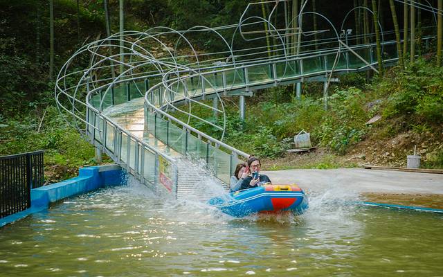 竹海漂流可以说是现代化与原始的完美结合,坐着皮划艇,在近1000m长的玻璃漂流滑道里享受空中漂流的美妙感觉。漂流的路线也是经过了精心设计的,360°滑道蜿蜒曲折、跌宕起伏,高速滑行的橡胶艇像浪尖上的过山车,蜿蜒曲折的山泉水推流不紧不慢,让你轻松写意地划过植被上空、穿过树枝低垂的茂密山林,更可沿途欣赏到从山顶上磅礴而下的瀑布水,让人有种丛林探险的神秘感。