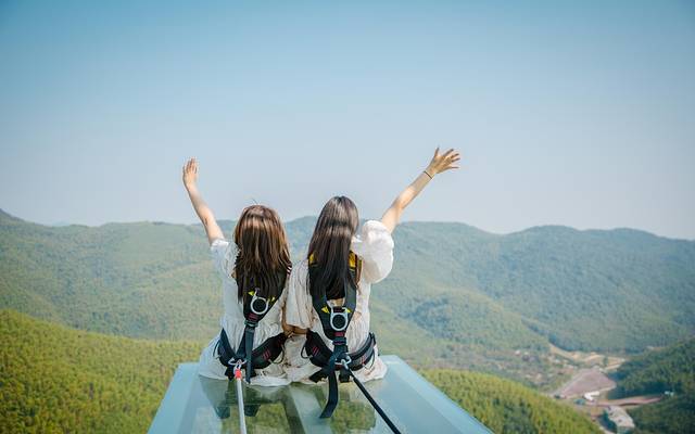 集风景秀美和惊险刺激于一身的天际探险塔,建在群山之巅,是天际森谷的核心和地标。天际景观台采用了36mm的防弹玻璃,外挑50m,落差200m。站在塔顶观光台上,千沟万壑尽收眼底,双目远眺,是令人心旷神怡的高山美景,近在眼前的是竹海,远处是重重叠叠的青山,山色苍翠,林木幽深,正午的阳光洒在这片绿意葱茏的地毯上, 安静得只能听见清风撩过树叶时发出的沙沙声响。