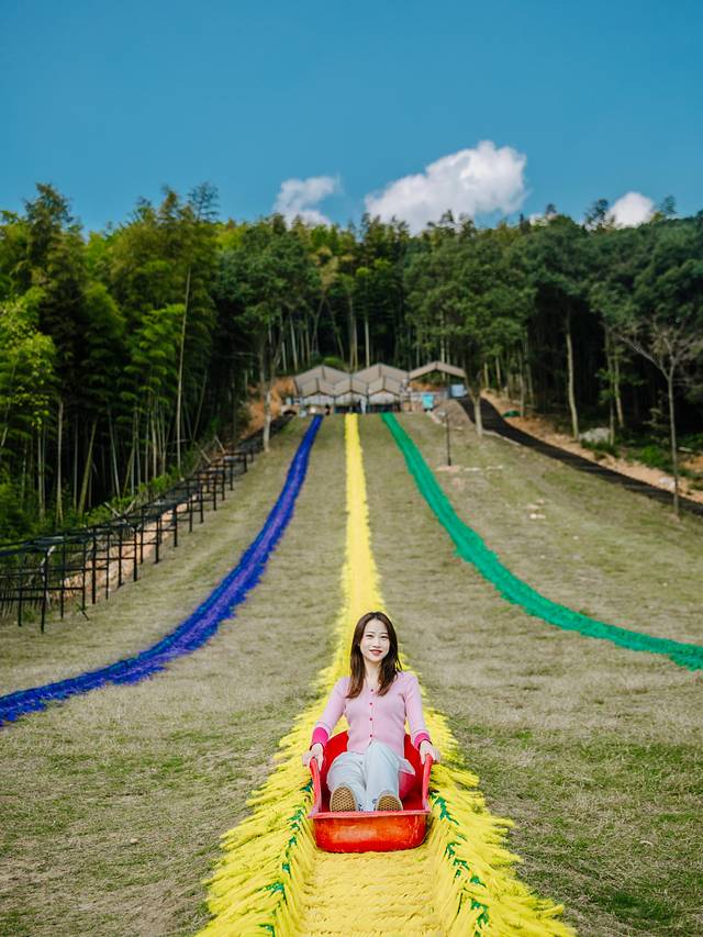 若是七彩滑道没滑过瘾,可以再来体验下这里的生态滑草,相比彩虹滑道刺激度会也会更弱一些哦。