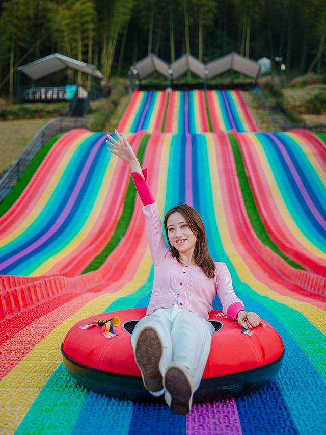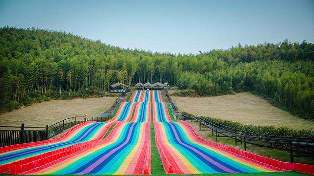 最初关注到七彩滑道,是因为它的颜值,各种颜色的滑带自上而下,宛如一道彩虹遗落在人间,无比绚烂。