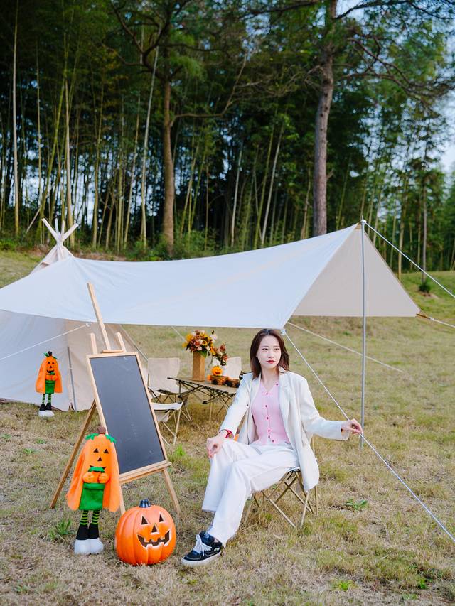 对小朋友玩的星空营地不感兴趣,大伙却在不远处的草坪上,看到了一处帐篷营地,堪称是仙女聚集地的帐篷小屋,也布置了很多万圣节相关的小道具,看起来气氛十足。