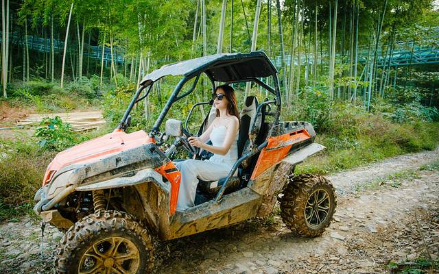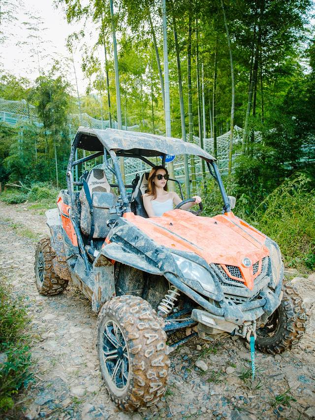 开着UTV,越过前方一个个或浅或深的坑洼,或低或高的土丘,紧紧拽着车上的把手,感觉车子的颠簸,在跨越土坡时身体猛地向上飞跃,展翅高飞、乘风而起的感觉,也太拉风啦!如果你的姐妹也有想要撒野的冲动,那就快来一起骑上会“蹦”起来的车,一起穿梭于竹林中,感受大自然的神奇吧。