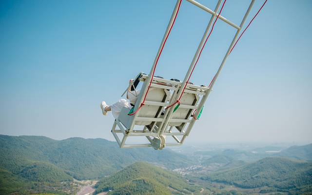 通过机械助推将秋千拉升至水平再放下,在被推出去的那一刻你才会体验到什么叫做真正控住不住的“命悬一线”和“泰山视角”。