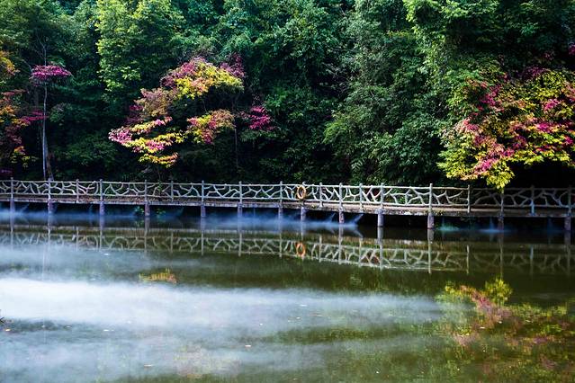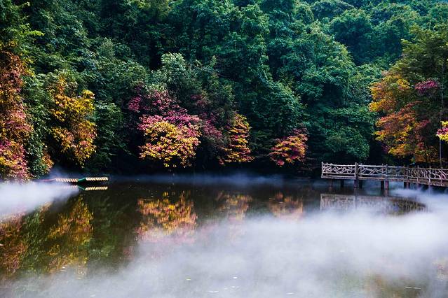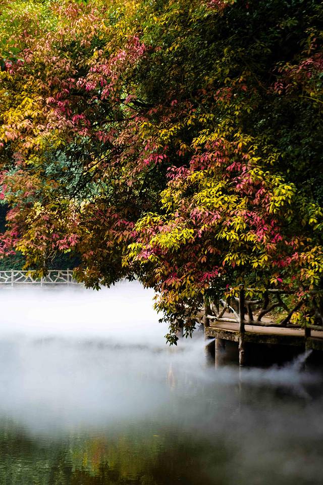 柳州的晚秋,就藏藏在融水双龙沟大山深处每一片原始森林中,满山遍布的红叶将静谧的乡野装扮成世外桃源的模样。山愈高,水愈清,雾愈浓,苗族的风景愈美。看落叶余晖,吹温柔微风,大自然的魅力在此触手可及。那些稍纵即逝的美好,每一刻都值得认真记录。
