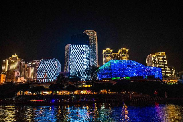 夜晚的窑埠古镇更加惊艳。当夜幕降临,华灯初上,整个古镇便笼罩在色彩斑斓的灯光中,美丽而又梦幻。那时的街道上游人如织,热闹非凡。而此时的柳江则显得十分幽静,江畔的暖光打在江水上,营造出温柔祥和的江面夜景,让人流连忘返。