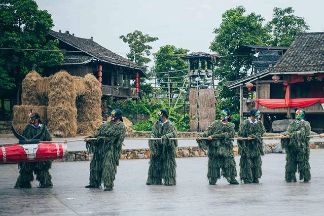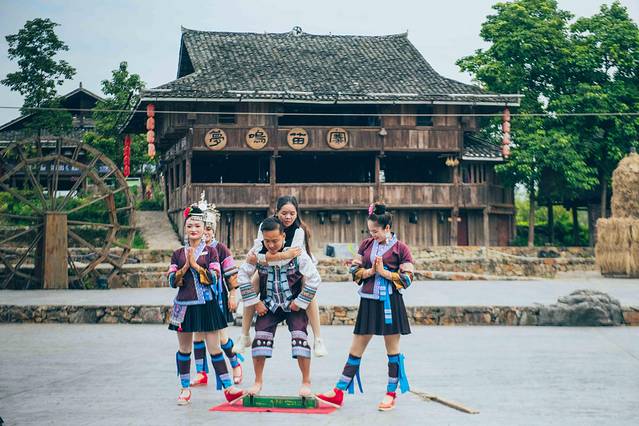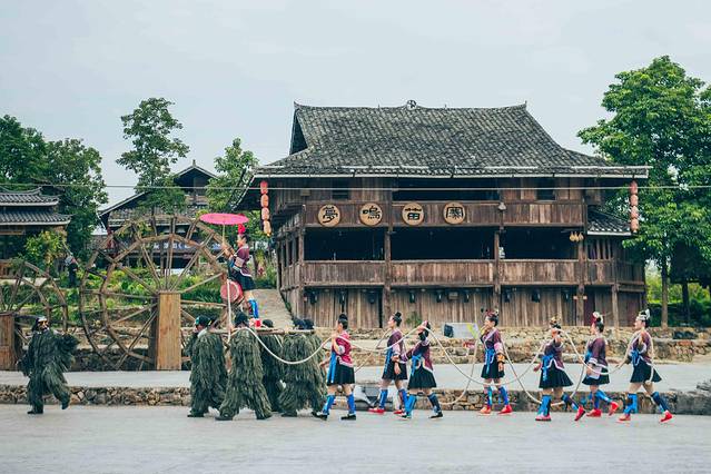 梦呜苗寨将山区里上百年的吊脚楼拆解编号,再在新苗寨重新组装,把建筑和居搬迁到新苗寨中,保存了完好的纯木结构的苗族古寨。这些居民多了许多生存的选择,如务农、经商或当表演演员,彻底改变了贫困的生活。