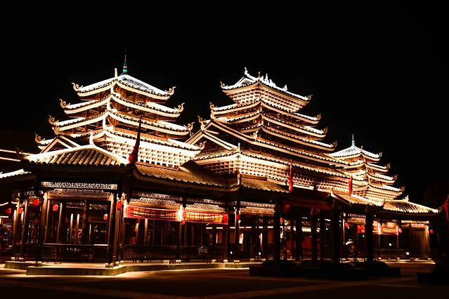 为了方便第三天程阳八寨的游玩,选择在第二天晚上开车前往程阳八寨入住超有feel的南夷民宿,南夷民宿四处尽显特色鲜明的侗族风情,民宿内的很多装饰都是以旧修旧重新利用而成,侗族当地特色文化被融入卧室、公共空间乃至洗手间各个细节里,超值得入住。在前往民宿的路上,还能欣赏到超美的侗寨夜景~除此之外,在程阳八寨里也还有许多特色风情民宿可以选择。想感受程阳八寨的古朴,强烈推荐一定要在这里居住一晚~