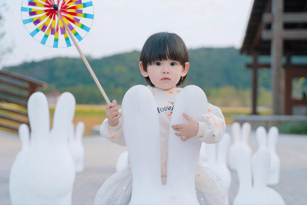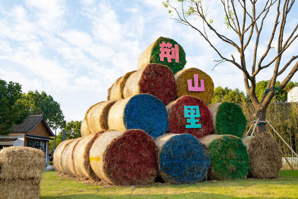 在荆山的山脚下有一片名为荆山里的田园度假村落,恰逢稻田艺术节的开幕,十月的尾巴,此时正值秋收的季节,眼前一片片的稻田,宛如金色的海洋。走进荆山里田园度假村落,在稻田旁的长廊里,摆放着一群可爱的兔子夜灯,萌萌的造型让云宝无比喜欢,白天时它们是可爱的玩具,晚上则是闪耀的精灵。