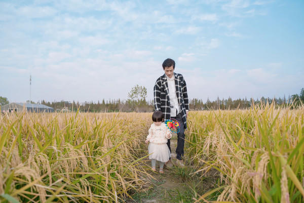牵着云宝的手,走在田间地头,像极了我脑海中的记忆,这也是我一直想带着云宝去稻田走一走的原因之一。也许在她看来,这和路边的花草都是一样的,但当我告诉她这就是我们吃的米饭的时候,她那有趣的表情让我觉得她明白了。