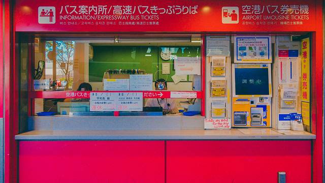 ↑左边是人工的售票窗口,长途巴士的票可以在这里买。右边部分是机场巴士自动售票机,可自行购买!