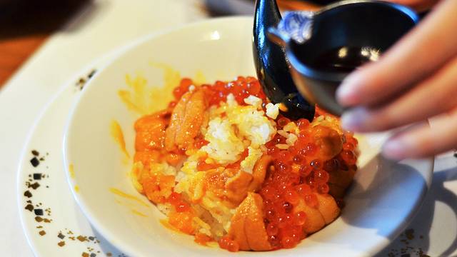 鲜香浓厚的海胆与一粒粒弹力十足的鲑鱼子的拌饭真的是太好吃了!所以下次来大阪还要来ww