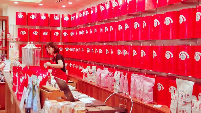 店里的产品绝大部分都可以拆成一盒一盒的小包装,一盒一般有11个茶包,也有可以自己搭配的礼盒装。红茶的口味种类非常多,光是听描述就觉得特别诱人,比如说像苹果、蜂蜜、樱花、橙子等等,甚至还有一个口味叫“京都四条的芬芳”,看起来特别有趣。回来之后一下子囤货有点多,还没来得及一包包拆,等哪天有空了可以找机会给大家做一个的红茶味道的测评ww