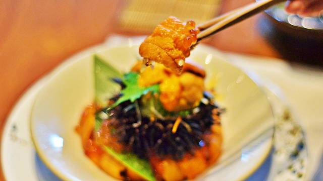 除了季节限定之外还要特别推荐一下它们家的海胆。海胆这种东西,对新鲜度的要求特别高。如果不是特别新鲜的海胆的话,入口多少都会有点苦味。对我来说,海胆入口有没有泛苦味往往是评价这家店食材新不新鲜的一个重要标准。这家店,没有苦味,超级新鲜!!