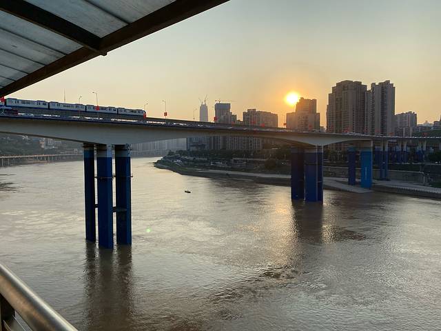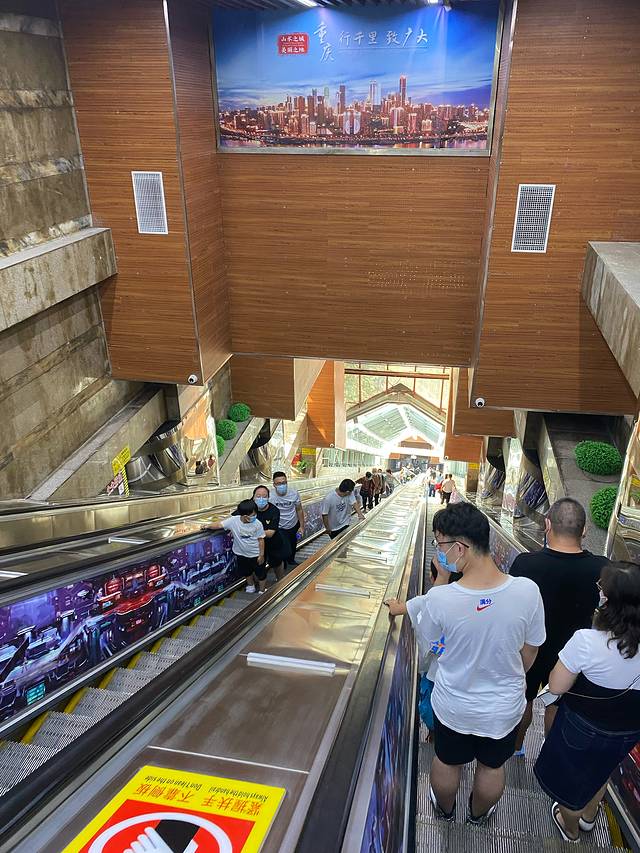 从朝天门码头沿着长江边一直走,路过许许多多的商场、小景点;望见自己住的民宿(其实直线距离很短,但是却遥不可及)