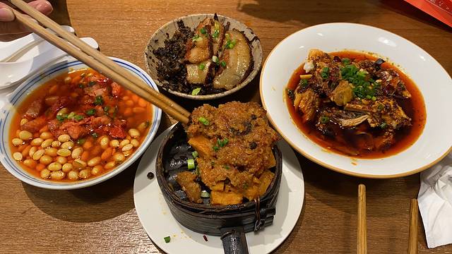 重庆最后一顿午餐了,口水鸡、粉蒸肉、梅菜扣肉安排上