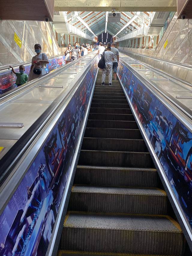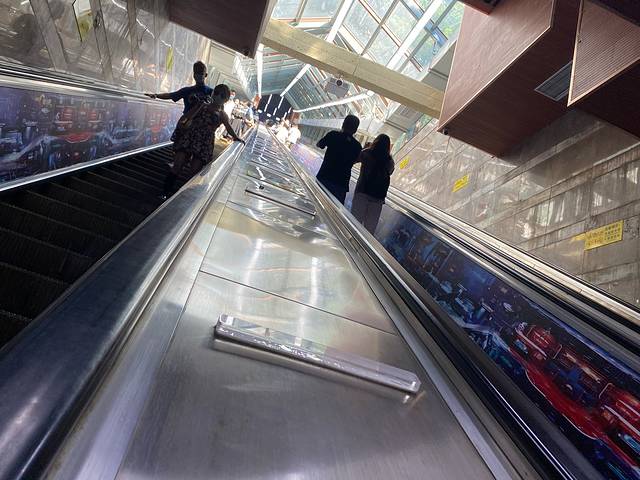 走楼梯向下一层进地铁站,坐电梯向下两层坐地铁,到站后坐电梯向下一层出站