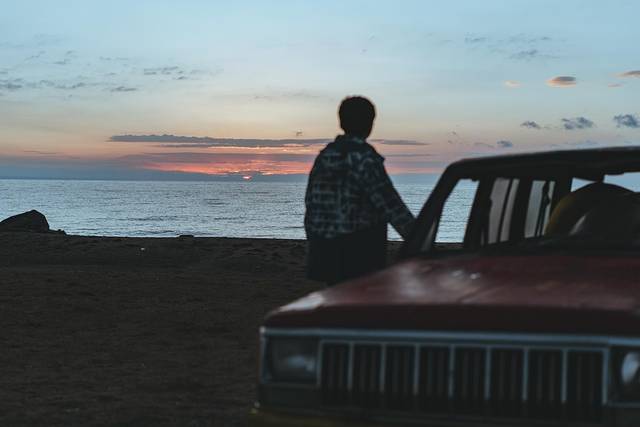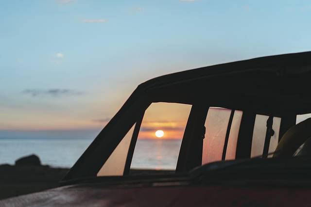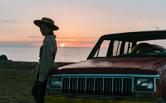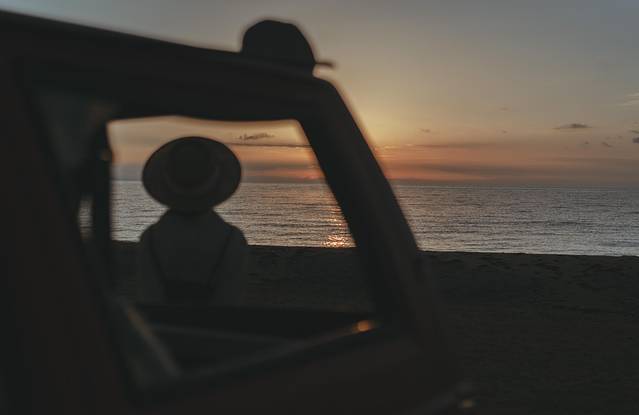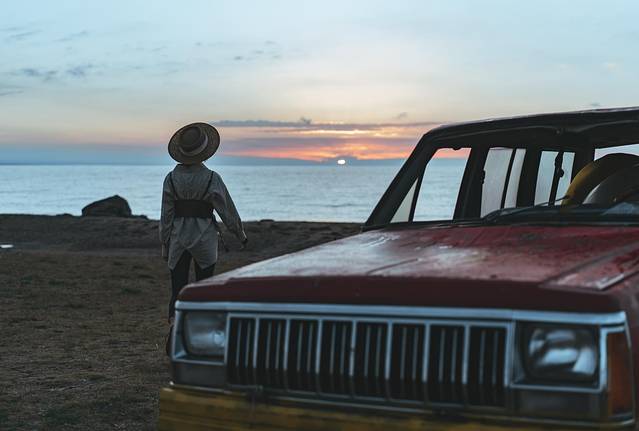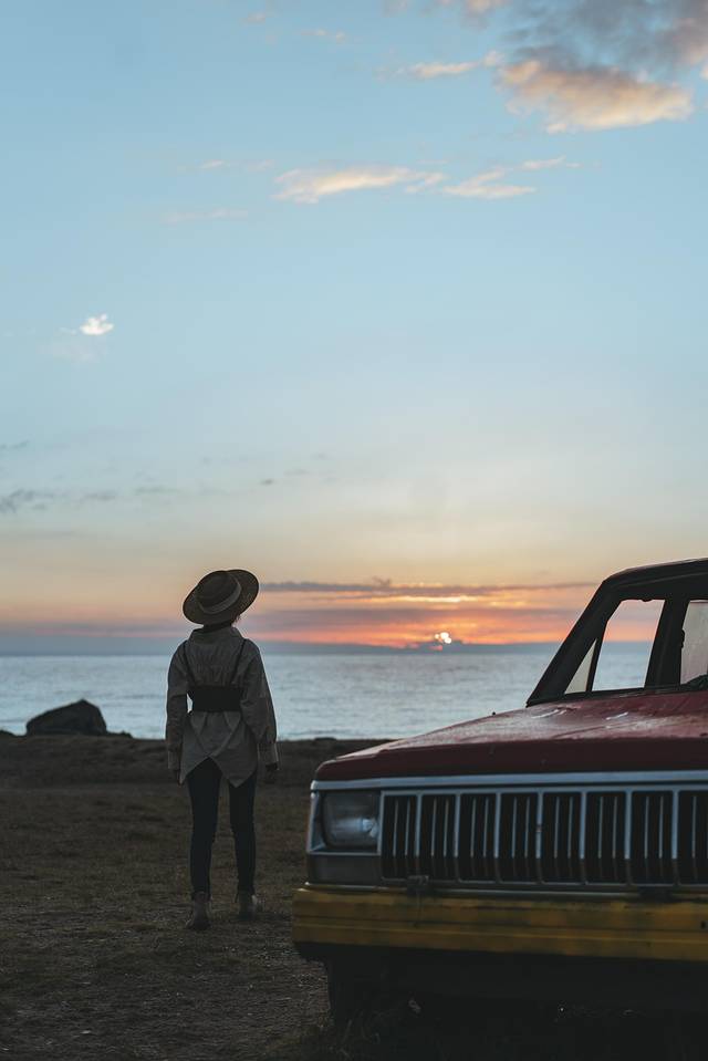 等日出的时候,我发现了这辆破旧的老皮卡,真的很适合拍照,很有电影感。