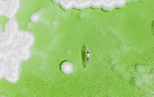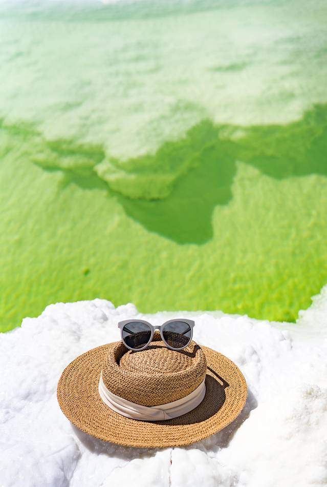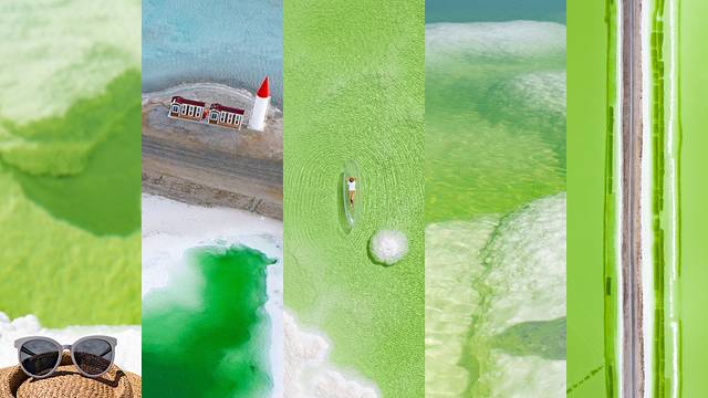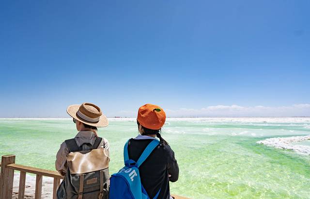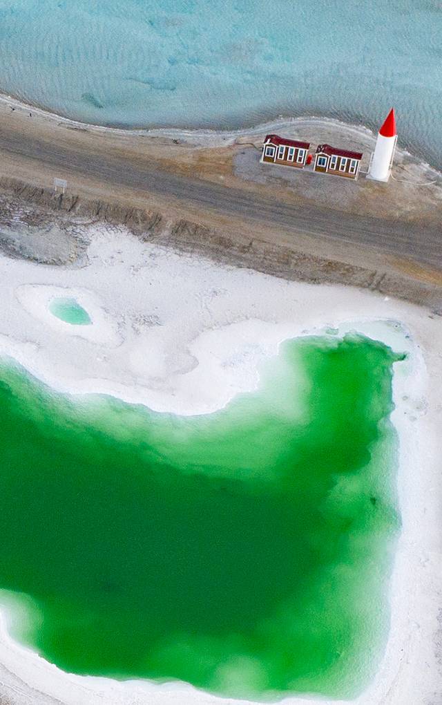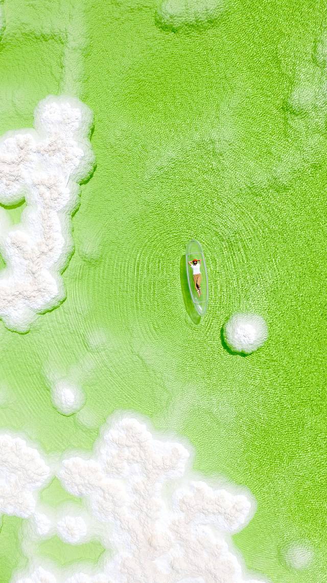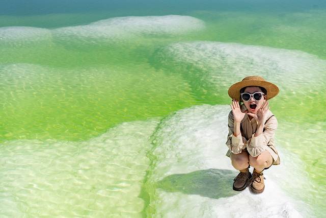 海西的绿,有大柴旦翡翠湖里深不见底宝石般的翠绿,有察尔汗盐湖棉花糖打底的剔透浅绿,也有高空俯视下万丈盐桥沿途的大面积果冻绿……在这里,躺进漂浮的玻璃船,就像掉进一个绿色的梦。