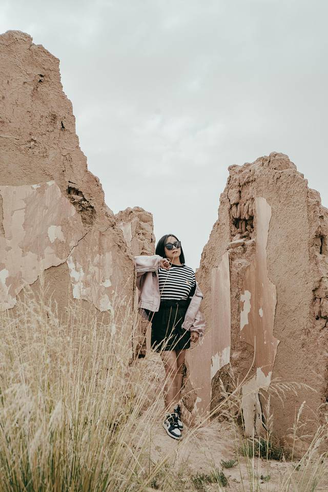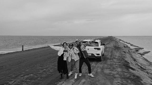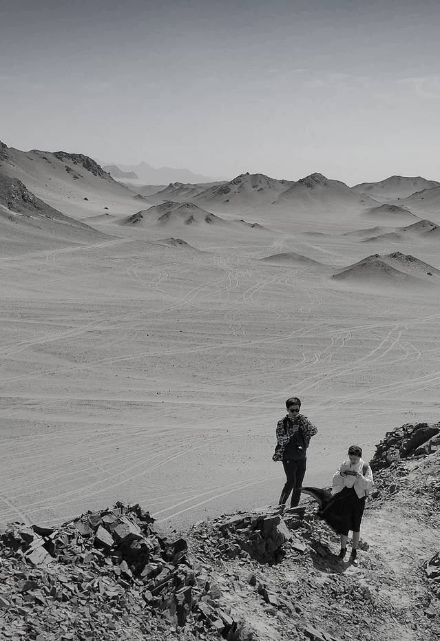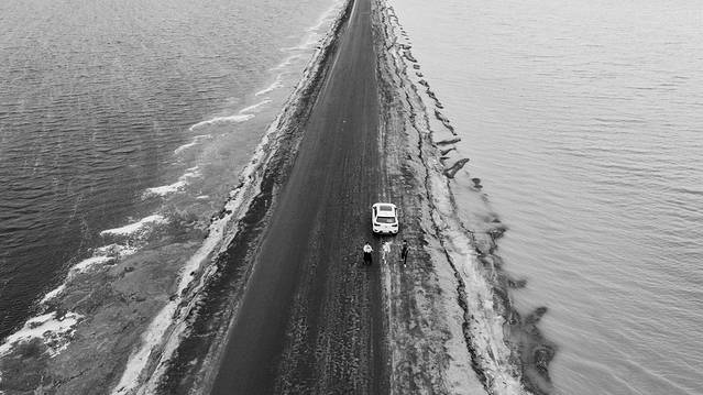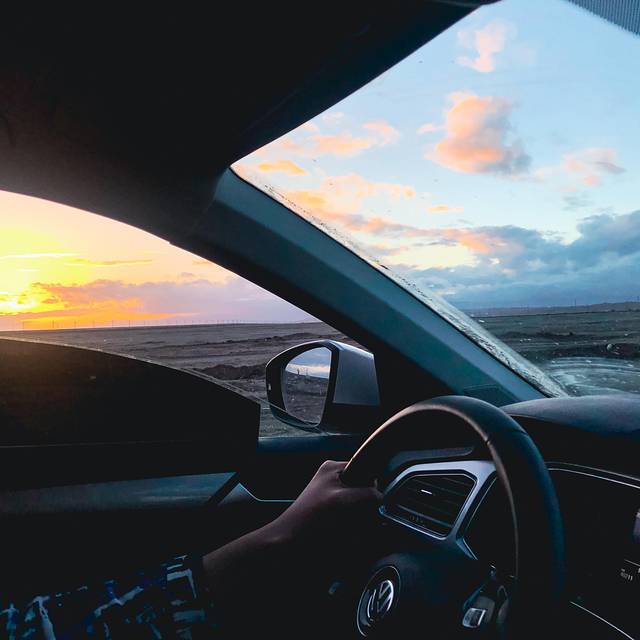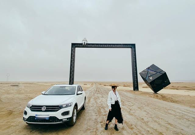 从东台出发,开车会先经过乌素特雅丹地质公园(水上雅丹),犹豫着这个天气状况还要不要去水上雅丹啊,打开车门,大风以一种能把人吹飞的架势直接劝退我们,头发Pia在脸上,眼前什么都看不见。还是上车,继续赶路吧。