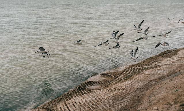 路过西台,本身左边是蓝色,右边是绿色的湖水也是一片混沌,索性停下来看看海鸟就走吧▼