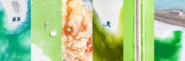 其间,也断断续续查了一些关于盐湖的资料,比如:海西的湖为什么色彩鲜丽又迥异呢?因为它们是咸水湖,其一,咸水湖里有生物生存,一些嗜盐菌、藻类喜欢生存在咸水里,这些小生物自带颜色,并且随着温度、咸度而变化颜色,导致常见的咸水湖颜色就有粉红色、红色、暗红色、紫色、蓝色、绿色等;其二,水分蒸发所造成的盐分差异让湖水拥有不同的色彩,一些盐湖中析出的盐结晶又使湖水表面呈现出纹路和节理,不同于一般的湖水表面,当有光线折射时就表现出五光十色的景象……