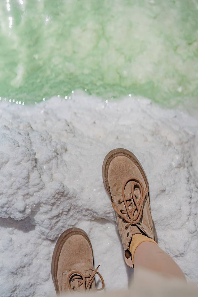 其实它是在青海盐湖集团厂区内,无法自己开车进入,需要从游客中心(目前正在开发,极其简陋的两排板房)统一乘坐大巴车进入,半小时到万丈盐桥附近,然后再选择要不要坐小火车开始游览,游览路线也有2-3公里……