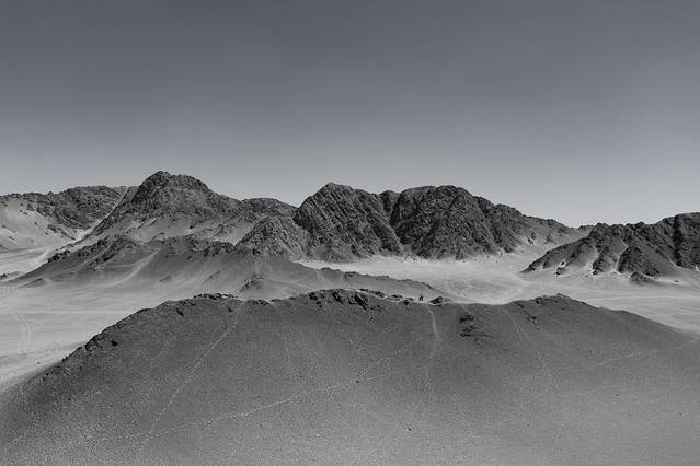其实不止是导航所在地,这是一个连绵不绝的“黑色矿山带”,与公路平行,一直延伸到与甘肃交界的地方,甚至沿着大苏干湖向更远处……