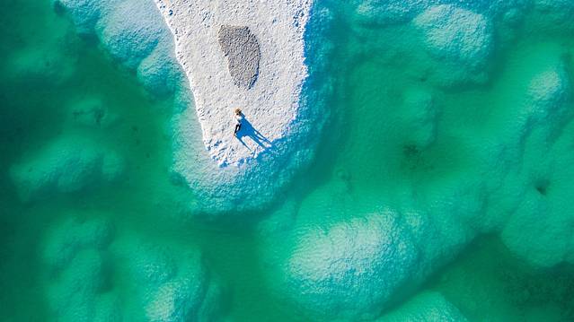 除了青海湖的海天一色,还有大柴旦翡翠湖、察尔汗盐湖各种深度各种饱和度的蓝,无人机视角,只需一眼就能把游人们征服。