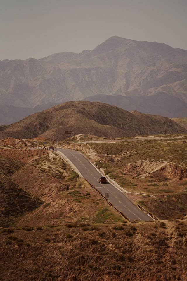 的确,两旁的山峦配上笔直的公路让人自驾的情绪拉满,无论怎么拍都拍不腻。