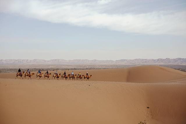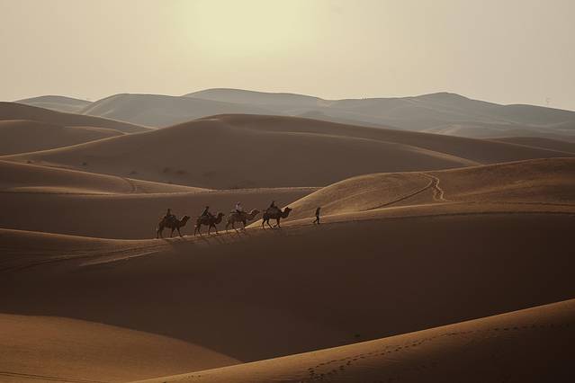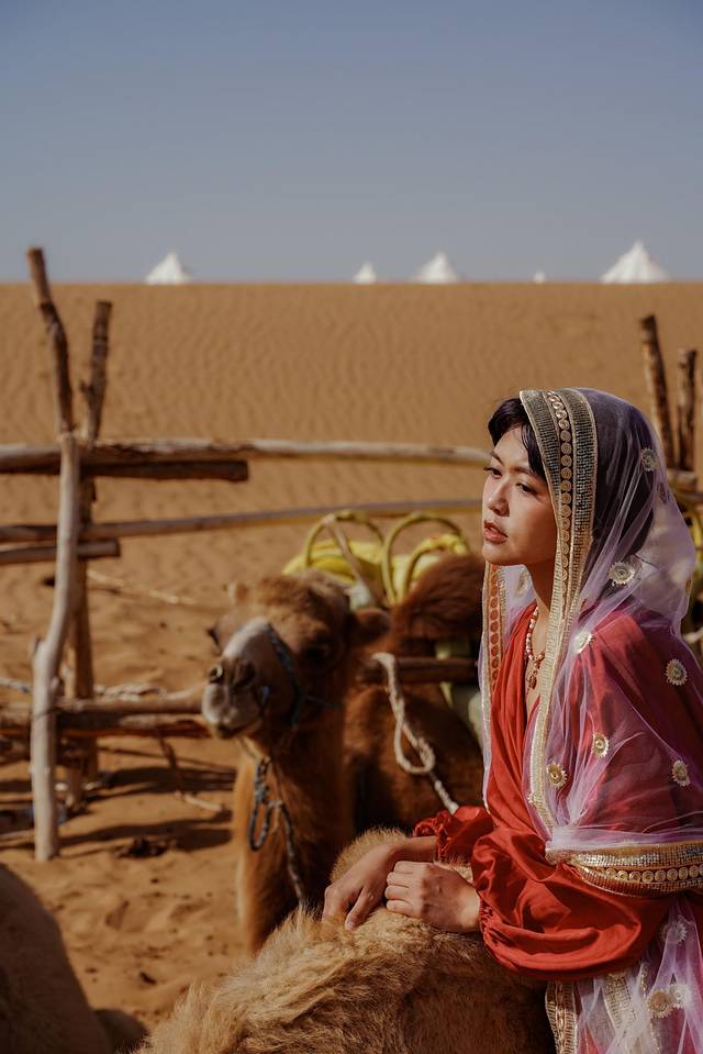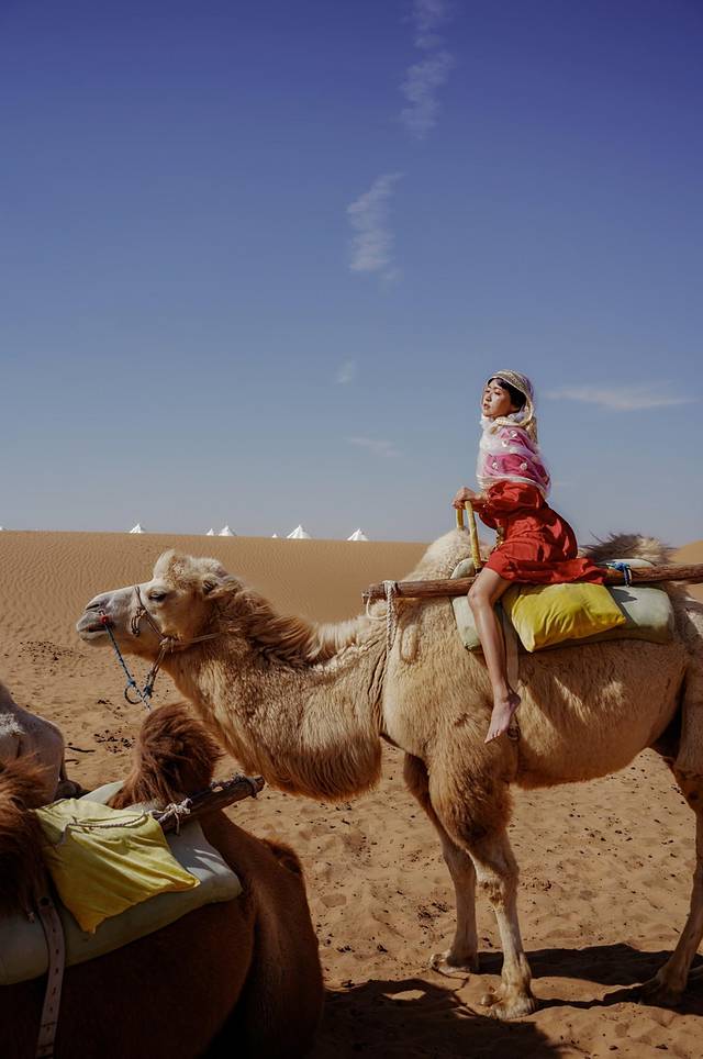 从沙漠深处醒来,我已换上了一袭红裙,骑上“沙漠之舟”,与你去看这壮阔的景色。