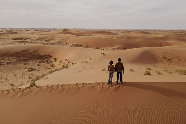 沙漠很大,沙子却很小,小小的沙子能堆砌出亘古静默一般的沙丘,独立于天和地之间成为永恒,正如爱情中的点滴,让彼此成为了生命中不可撼动的存在。