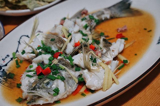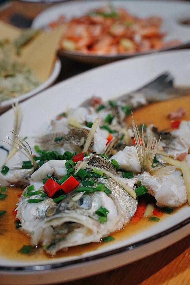 富春江的特色菜“葱油白鲈”,确实惊艳到我。没有太多的处理,只要简单的葱油,上桌后老板娘不断叮嘱“要趁热吃,口感最好”。鱼肉嫩白鲜美,葱油香气十足,但丝毫不喧宾夺主,二者反而相得益彰。这种鱼几乎没有太多的小刺,吃起来也相当过瘾。