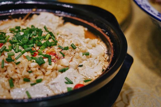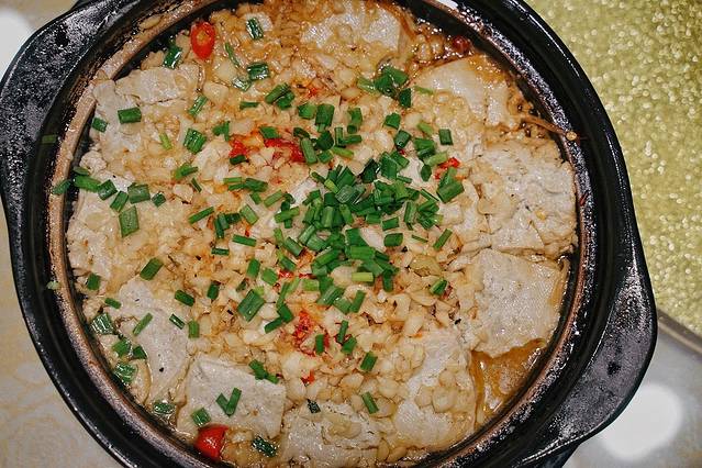 提到在富阳吃臭豆腐,永昌臭豆腐便是一绝,相传制作工艺已有上百年历史。香喷喷,美滋滋,口感细腻嫩滑,无论怎么烹饪都能出彩。位于东吴公园边的这家“老师傅”,把臭豆腐中加入大量的葱蒜剁椒一同在砂锅里煨制,在经典的味道之中创造出了画龙点睛的效果。