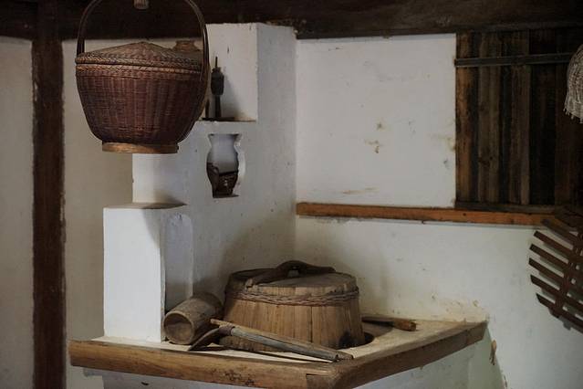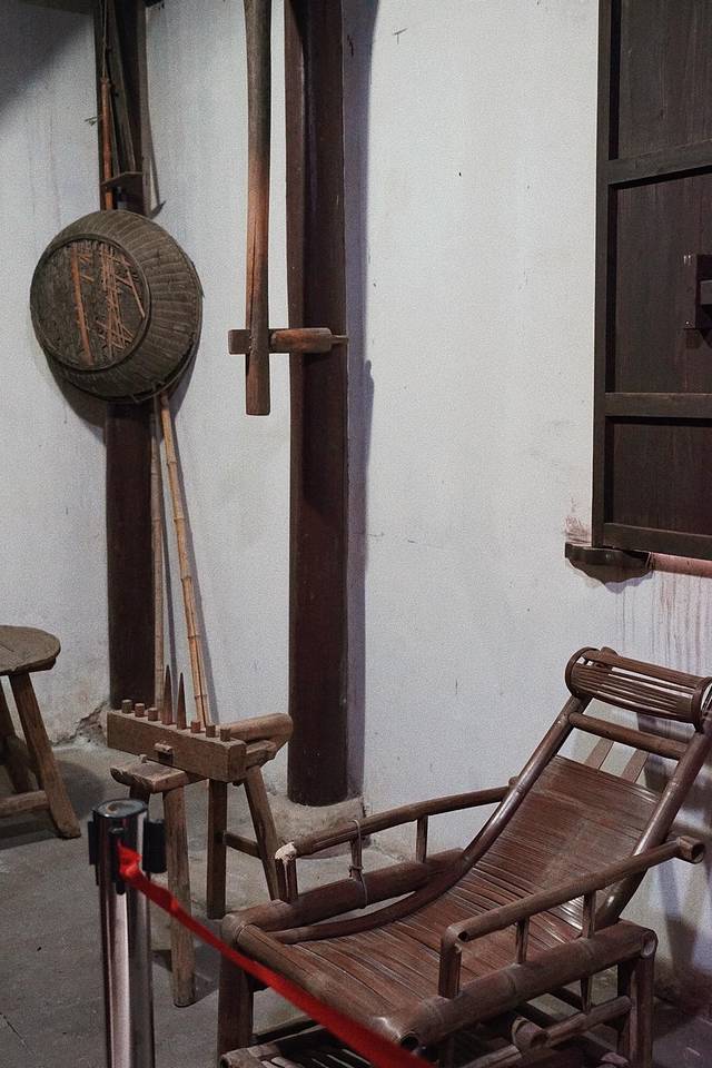 故居的厨房内陈列着灶台以及许多厨房用具,竹制躺椅摇摇晃晃,吱呀吱呀仿佛回到民国年代。曾几何时,这里炊烟升腾,饭菜飘香,一家人在此忙碌热闹的身影仿佛又浮现在眼前。