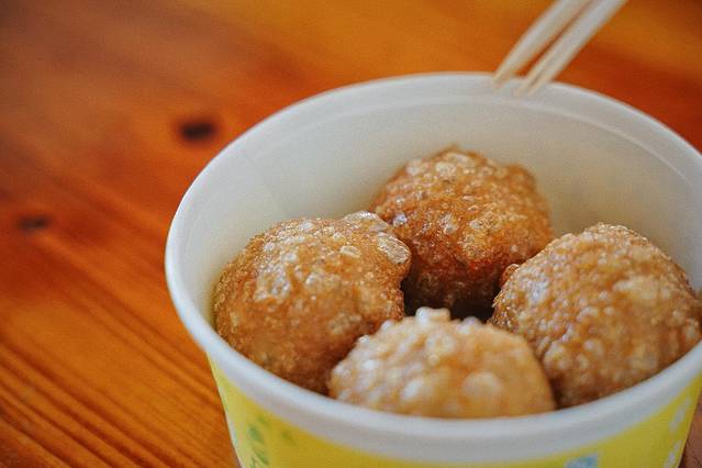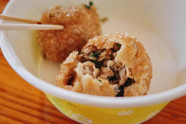 据说在公元200年左右,孙权成为江东统帅,家乡人忙着为他运送粮草。一日,送粮队伍在途中遭风雨,粮草淋湿,面粉成糊。无奈之下,龙门人就地鼓捣出柔软韧性的面团,洗涤成面筋,包进点猪肉,烧熟后成了一道美食。外皮酥脆,内馅鲜香,从此这样小吃便香飘整个古镇。