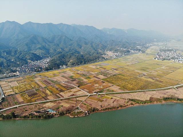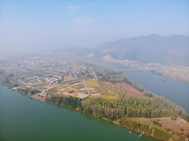 ▼富春江上的桐洲岛,晴空万里时碧水蓝天绿意正浓,细雨迷蒙时这里便是诗情画意的“烟雨桐洲”。