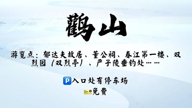 鹳山,就位于郁达夫故居旁百余米处,郁达夫的作品里也曾提到过这座山。在《过富春江》一文中,郁达夫陪着一个英国来的军官,从杭州一路来到富阳,游览了鹳山。当看到富阳富春江以及鹳山美丽景色后,英国少校晏子感慨万千,说:“我若要选择第二个国籍的话,那我情愿来做个中国人”。