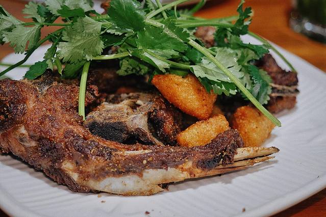 是不是土猪肉,一入口就分辨得出,经过油炸后撒上椒盐的排骨具有一种独特的韧劲,肉质更有嚼劲,搭配上炸到外酥里糯的糯米团子,这道菜就是一场唇齿之间的较量。