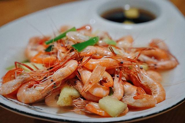 从不吃醋的我,也跃跃欲试剥了一只虾蘸了一点点醋,没有想象中难以忍受的酸,反而让这只虾在口腔的回味中将“鲜”的持久度变得更长了一些。