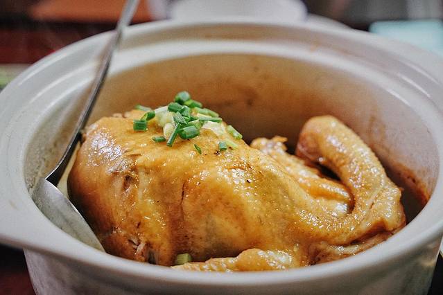 一整只农家土鸡放在砂锅中炖煮,直至整只鸡肉被炖的酥烂入味,嫩而不柴,砂锅透气性良好却能锁住鸡肉的汁水,让这些精华的汤汁一点都没有浪费,在炖煮中持续地滋润着肉身。轻轻一碰,肉与骨头分离开来,肉质鲜嫩却不绵软,汤汁鲜香得刚刚好,绝对配得上是一只“神仙鸡”。