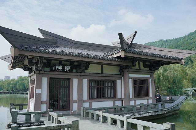 湖边上,一艘仿古的船舶形状的房屋映入眼帘,很像古时候的游船画舫,上面一块匾书“乐雅”。