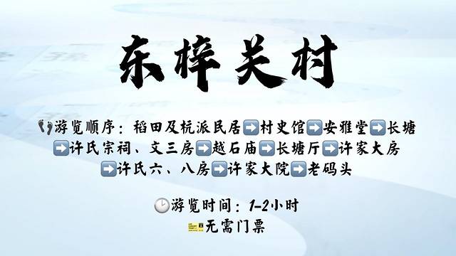 从杭派民居旁边的主路走进村子,不消几步路就能看到东梓关村史馆。入门处的画布上,印着郁达夫题写的“东梓关”题字。按照《东梓关村志》中的说法,从南北朝时孙瑶将军来此驻守,到明代朱元璋即位时在此设巡检司守关,再到现在,这座村子已有1500年的历史了。厚重的历史上,这里文化底蕴深厚,又一直是徽杭古道水路的重要关隘,自古以来这里便是热闹与繁华所在。