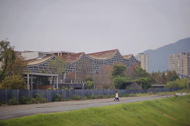江边宽敞的马路旁,“富春山馆”四个大字直直地映入眼帘,字体借用红锈的铁雕刻, 历史厚重感扑面而来。这里是王澍荣获普利兹克奖后最完整的一组建筑作品,以不远处鹿山的山体为依据, 抽象出建筑主体的“山”的轮廓。山在山下立,人在山中游。