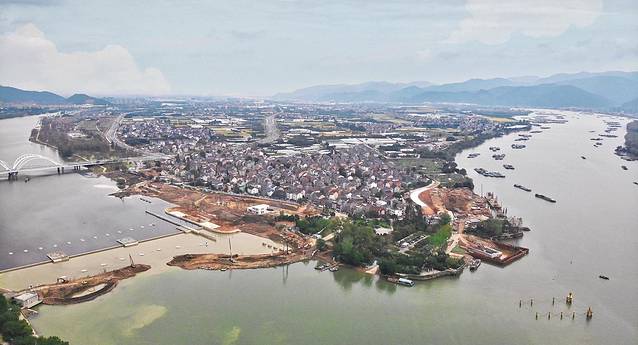 桐洲岛的名字据说颇有来历:相传黄帝时期的药圣桐君老人在洲上种草药而得名,与一城之隔的桐君山似乎在彼此佐证着这位远古仁心老者存在的事实。从地理位置上,这里是富春江进入富阳境内遇到的第一个沙岛,在此,江水被一分为二,又在小岛延伸的尽头处合二为一。从空中俯瞰,这座狭长的小岛文静地镶嵌在仿佛绿丝带般的江水之上,当天的雾气在半空中藕断丝连,烟云升腾,那虚无缥缈间显露出一丝绿意,赋予了这座岛屿“烟雨江南”式的美感。