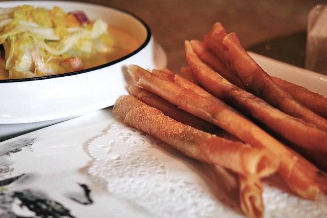 若是想体验点不一样的,店里的“牛肉卷”用春卷皮包裹牛肉馅料炸制而成,外皮酥脆,内馅却还保留着肉汁的鲜嫩,一口一条嘎嘣脆完全停不下来。