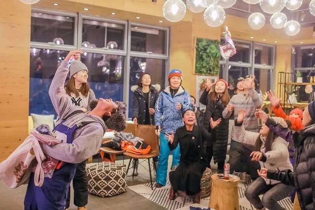 在滑雪度假之余,约几个好友喝喝茶,畅所欲言聊天、拍几组网红打卡照片,感受浪漫温馨休闲时光。或与五湖四海的朋友们雪后狂欢,点一杯咖啡,取一本杂志,来份简餐,起瓶啤酒,集体举杯,敬缘分,敬友谊,敬对滑雪的热爱。