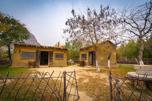 山下还有一处还原的老房子,泥巴与秸秆做的墙,茅草做的屋顶,还有那晒干的葫芦和玉米棒子,寥寥几笔,把北方秋天的味道展现的一览无余。